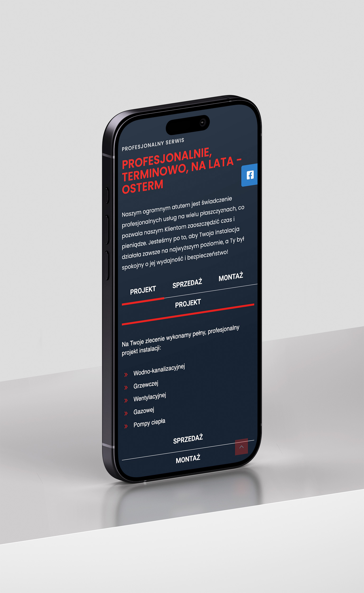 W stopce oraz zakładce kontaktowej znajdują się aktywne przyciski prowadzące do profilu na Facebooku, które zapewniają płynne przejście do kanałów społecznościowych. Dzięki temu użytkownik może łatwo znaleźć firmę i pozostać z nią w kontakcie.